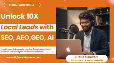 Digital with Dhana, led by Dhana Sekaran, is a top SEO, GEO, PPC, and AEO expert in Mumbai. We help businesses dominate organic search results, local map packs, paid campaigns, and AI-generated answers. Our integrated approach ensures maximum traffic, leads, and authority for your brand.